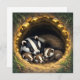 Cute blank card with an ai illustration of a a mama badger and her babies all napping in their underground tunnel called a sett.