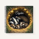 Cute personalised sketchbook with an ai illustration of a a mama badger and her babies all napping in their underground tunnel called a sett.