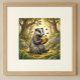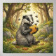 Step into a peaceful woodland dream where gentle animals wander through warm forests, streams, and golden leaves. This whimsical storybook illustration of a cute badger enjoying honey brings a cosy fairy-tale atmosphere to nurseries, children's rooms, and quiet reading corners.