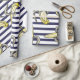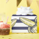 Cute Banana Illustrations on Navy Blue Stripes Wrapping Paper