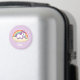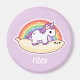 Super cute purple baby unicorn riding a happy banana under a sparkle rainbow. Add your name or custom text.
