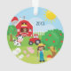 Give your little farmer her own special custom barnyard Christmas ornament! Holiday ornament has a cow, pig, sheep, cat, chicken, horse, and duck. Smiling in the corner is a bright yellow sun and in the foreground is an apple tree and young farmer kid. The pig has baby piglets and the sheep has a little lamb. Personalize the ornament with your young girl's first name on the front and the year on the back.
