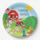 Cute Barnyard Animals, Farmer, Tractor Birthday Paper Plate