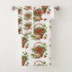 Patterned towel set with a fresh summer vibe. A cute illustration featuring fresh picked strawberries filling up a quaint wicker basket.