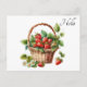 Postcard with a fresh summer vibe. A cute illustration featuring fresh picked strawberries filling up a quaint wicker basket.