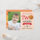 Introducing the Cute Basketball Court & Red Ribbon Photo 2nd Birthday Invitation, featuring a personalised photo of your baby. With its basketball court background, playful font, and basketball as a centre stage adorned with a red ribbon, this invitation captures the essence of a basketball-themed celebration. The orange colour scheme adds warmth, while the cute design appeals to both kids and parents. It's the perfect choice for a kid's birthday party, emphasizing sports and the joy of play. The invitation showcases a vibrant aesthetic and thematic elements, ensuring a memorable and fun-filled event. Get ready to hoop it up and celebrate with this eye-catching and charming second birthday invitation.