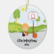 Personalised dated blue & red Basketball player holding a basketball with a basketball hoop Christmas Ornament. A Wonder Christmas gift sure to be treasured for many years to come.