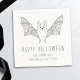 Add a subtle seasonal touch to your Halloween table with this paper napkin featuring a simple line art illustration of a bat with open wings. Two personalizable text areas below the design allow you to add a festive greeting such as “Happy Halloween” and a custom party name or year. Designed in a modern, minimal style, this napkin is a playful yet understated way to coordinate your seasonal tableware.