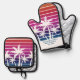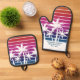 Cute Beach House Sunset Palm Tree Custom Oven Mitt & Pot Holder Set