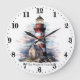 Cute Beach lighthouse lovers add name Large Clock