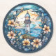 Cute beach lighthouse lovers party round paper coaster