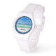 A beautiful beach photograph taken in the ideal vacation destination of Destin, Florida. The gorgeous green waters of Sandestin wash up to the sandy seashore underneath serene blue skies to make the perfect scenic vacation photo wristwatch. Customise this pretty, tropical watch with your name.