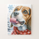 Cute Beagle Dog Winter Holiday Snowflakes Puppy Jigsaw Puzzle
