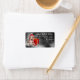 Cute Beagle in Santa`s hat and Christmas decor sitting in front of a red gift box, staring at the snowfall in the light, unique, custom winter theme address label with a tranquil, serene, festive feeling.