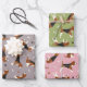 Cute Beagles Paws and Bones Grey Green Pink Wrapping Paper Sheet