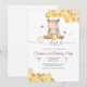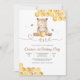 Celebrate your little ones special milestone with this adorable bear-themed 1st birthday invitation. Featuring a sweet bear holding honey, buzzing bees, and honeycomb accents, this charming design sets the tone for a fun and memorable party. Perfect for babys first birthday, it combines playful woodland style with warm golden details to delight guests. Customise with your event details and create a keepsake invitation that family and friends will treasure.