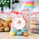 This cute baby shower sticker feature a girl teddy bear flying a plane among fluffy clouds with text "We can bearly wait" and personalised with your shower details.