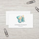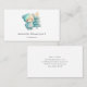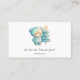 Business cards with an adorable illustration. A cosy bear with stars and sparkles in its fur. Standing beside a Christmas tree. Pastel blue-green colour. Whimsical and cute.
