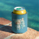 Cute Bear and Christmas Tree Teal Holiday Can Cooler