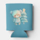 Can cooler with an adorable illustration. A cosy bear with stars and sparkles in its fur. Standing beside a Christmas tree. Pastel blue-green colour. Whimsical and cute.