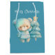 Cute Bear and Christmas Tree Teal Holiday Medium Gift Bag