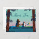 Cute Bear and Fox kayaking on a wild forest river Postcard
