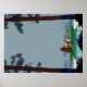 Cute Bear and Fox kayaking on a wild forest river Poster