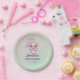 "Make your baby shower table setting extra special with these personalised paper plates! Featuring our whimsical hot air balloon and adorable pink bear design, these plates can be customised with the date of your event. They are perfect for serving cake, snacks, and appetizers, and are an essential part of our Kawaii Pastel Baby Shower Collection. These plates are the perfect finishing touch to create a charming and cohesive theme for the celebration of the new arrival."