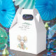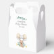 Trendy and cute rustic boy baby shower favour box featuring a baby bear perched on eucalyptus, buntings, with balloons. Perfect for boys and gender neutral baby showers.