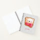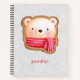 Spiral notebook with a cute and adorable bear face set on a cookie base. Wearing a red and white striped scarf.