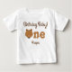 A bear first birthday t-shirt for your baby. The baby shirt colour scheme is white and brown with the word "One" in large letters with a bear face illustration as the first letter of the word. Simply, customise this shirt, add it to your cart, and happy birthday to your wonderful baby!