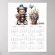 Cute Bear Hat Scarf Riding a Bicycle 2025 Calendar Poster