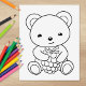 Cute Bear Holding a Berry Colouring Page Rubber Stamp