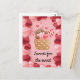 An adorable Valentine postcard with a sweet teddy bear hugging a yummy cupcake. There are hearts all around him, with a romantic pattern of red and pink hearts around the edge of the card. The romantic message reading 'Sweets for the sweet' can be personalised to suit if wished.