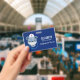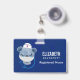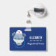 Name badge with a cute illustration of a blue bear wearing a nurses hat with a little heart on it. Also wearing a protective face mask and has a blue stethescope too.