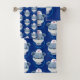 Towel set with a cute illustration of a blue bear wearing a nurses hat with a little heart on it. Also wearing a protective face mask and has a blue stethescope too.