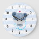 A clock with a cute illustration of a blue bear wearing a nurses hat with a little heart on it. Also wearing a protective face mask and has a blue stethescope too.