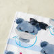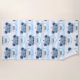 A beach towel with a cute illustration of a blue bear wearing a nurses hat with a little heart on it. Also wearing a protective face mask and has a blue stethescope too.