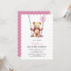 Cute Bear Pink Balloon Girl First Birthday Invitation