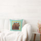 Cute pillow for any child's room. Sweet bear with butterfly on head, framed in yellow on a mint green pillow. Personalise with any name or text.