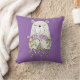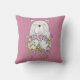 Pretty throw pillow with a cute bear holding flowers of pink and purple!