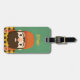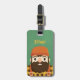 A luggage tag with a cute illustration of a lumberjack with orange beanie hat, a large full beard, orange suspenders and a yellow and brown plaid pattern shirt. Personalise with child's name on hat.