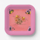 Cute Bee and Flower Pink Spring Garden Paper Plate