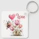 Cute Bee Love Heart Balloon Spring Flowers Key Ring