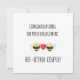 This cute bee love pun funny engagement card featuring a cute bee theme is perfect for sending your warmest engagement wishes to an engaged relative or friend. With a sweet love pun and heartfelt engagement congratulations, this card embodies your warm congrats as they journey toward their wedding day. The playful engagement quotes and bee-inspired design make it a delightful choice to celebrate their love. On the front of the card, it warmly states, “Congratulations on your engagement. Bee-utiful couple.” On the back, it playfully adds, “I’m buzzing with joy over your engagement!” You can also personalize this card for your family member or friend that’s engaged, making it extra special and meaningful. This card is the perfect blend of heartfelt congratulations and a touch of whimsy, making it a wonderful choice for celebrating their special moment.
