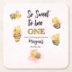 Cute Bee One Pink Black First Birthday Party Square Paper Coaster