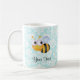 Cute Bee; Teal Damask Pattern Coffee Mug