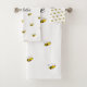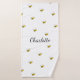 A stylish white background decorated with cute happy smiling bumble bees. Personalise and add a name. The name is written with a modern hand lettered style script