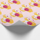 Patterned wrapping paper with a sweet image of a pink and white striped bumble bee. A piece of yellow honeycomb behind. A letter sealed with a heart and a group of floating hearts are also part of the design. Pastel pink background.