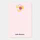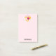 Large post-it notes with a sweet image of a pink and white striped bumble bee. A piece of yellow honeycomb behind. A letter sealed with a heart and a group of floating hearts are also part of the design. Personalise with a name.